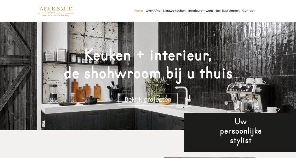 Rebranding & WebsiteAfke Smid Doel. Het ontwikkelen van een sprekende en overzichtelijke website die het merk Afke Smid krachtig en herkenbaar zal uitdragen. De website moet bezoekers inspireren, vertrouwen wekken en aanzetten tot contact. Daarnaast is het doel om een nieuwe huisstijl, een nieuw logo en professionele fotografie van de keukens te realiseren, zodat de kwaliteit, sfeer en het vakmanschap van Afke Smid visueel worden versterkt en er een consistente, eigentijdse merkuitstraling ontstaat. Aanpak. We zijn gestart met het ontwikkelen van de nieuwe huisstijl, in nauwe samenwerking met de klant. Daarbij hebben we het logo, kleurgebruik en overige visuele elementen vormgegeven om een eigentijdse en herkenbare merkbasis te creëren. Vervolgens hebben we bij diverse projecten sfeervolle, representatieve foto’s gemaakt die de kwaliteit en het vakmanschap van Afke Smid tot leven brengen. Met deze bouwstenen hebben we een overzichtelijke en aansprekende website gerealiseerd, waarin de nieuwe stijl, fotografie en merkidentiteit samenkomen. Altijd met hetzelfde doel voor ogen: het merk krachtig uitdragen en bezoekers activeren om contact op te nemen. Resultaat. Een website die de identiteit van Afke Smid volledig weerspiegelt. Bezoekers krijgen in één oogopslag een duidelijk beeld van wie Afke is, wat ze doet en waarin haar kracht ligt. De site ademt haar persoonlijke stijl en combineert die met een professionele, creatieve uitstraling. Hierdoor ontstaat niet alleen vertrouwen, maar worden bezoekers ook daadwerkelijk geprikkeld om de volgende stap te zetten en contact op te nemen. Wil je jouw bedrijf een boost geven? En ben je benieuwd naar de mogelijkheden? Contact ons